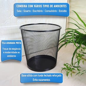 Seu design telado não só adiciona um toque moderno e elegante, mas também garante uma ventilação adequada para evitar maus odores. Com formatos arredondados, este cesto se adapta facilmente a qualquer ambiente, proporcionando praticidade no dia a dia