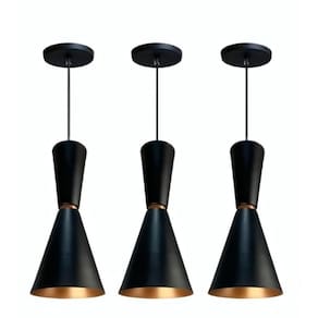 - Design Moderno e Versátil: Com seu formato de cone e acabamento preto sofisticado, este lustre é perfeito para decorar mesas,