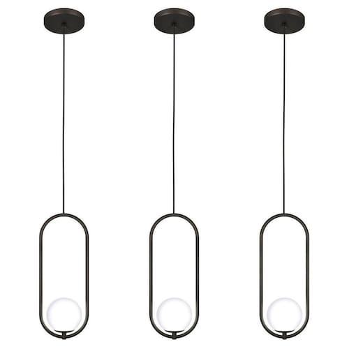 Tudo para iluminar seu ambiente com muito charme Perfeito para todos os ambientes Modelo: pendente Cor es : preto Material: alumínio Cabo de alimentação regulável: 1,50m Canopla de teto: alumínio 12cm Luminária: 1 soquete g9 Número de lâmpadas: 1 lâmpadas não inclusas Voltagem: 127v/220v Medida: 36 x 14 cm Peso líquido: 0,25 kg Conteúdo da embalagem: 3 luminárias de teto