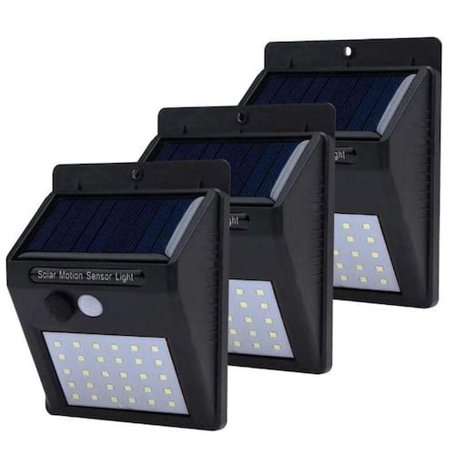 Kit 3 Luminária Solar De Parede 30 Leds 6w Sensor De Movimento Perfeita para quintal, varanda, garagem entre outros ambientes externos, suportando diversas condições climáticas.
