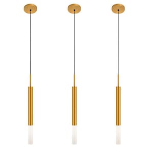 Kit 3 Luminárias De Teto Pendente Tubo Difusor Sala Dourado