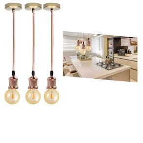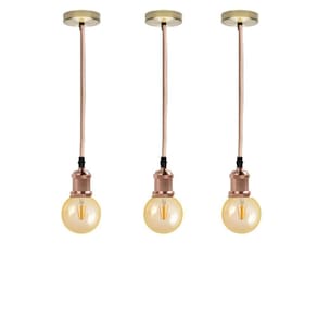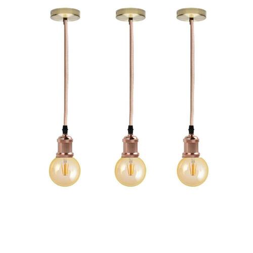 Kit 3 Luminárias Pendentes De Metal Retro Vintage Com Lâmpadas De Filamento Led G95 Cor 2300K Âmbar Formato Globo Cor: Rose Gold Luminária pendente retro vintage com lâmpada formato globo âmbar, traz Estilo para sua casa, beleza e aconchego.