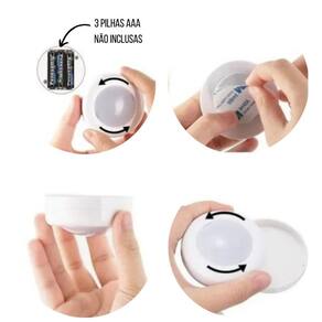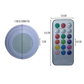 Kit Com 3 Luminárias Lâmpadas Redondas Adesivas A Pilhas RGB Coloridas Led Spots Sem Fio Com Controle Remoto Kit 3 Luminárias Lâmpadas Led Spot Sem Fio Com Controle Remoto, ideal para serem utilizadas em guarda-roupas, armários, gavetas, corredores, varandas, escritórios, quartos, estantes, cabeceiras de camas, toaletes, espelhos, nichos, closets, escadas, balcões, escrivaninhas e em vários locais que necessitam de iluminação colorida sem a necessidade de perfurações, parafusos e cabos. Especificações do produto: - Material: ABS - Formato da luminária: Redonda - Quantidade de led: 3 leds por luminária - Tensão: 4,5V Cada Spot - Fonte de Energia: 3 Três Pilhas AAA para cada spot Pilhas não inclusas - Cor do Produto: Branco - Cor da Luz: RGB Colorida - Potência: 1,2W / 50 LM Cada Spot - Medidas de cada spot: 7 x 3 cm - Medidas do Controle Remoto: 3,9 x 8,5 x 0,6 cm - Modelo da bateria do controle remoto: CR2025 - Distância do controle remoto: Até 5 metros - Peso total de cada kit 3 luminárias: Aproximadamente 130 gramas Atenção: Esse produto não é a prova de água, e também, não deverá ser instalado em lugar úmido, caso contrário, o produto será danificado. Manual Rápido - Coloque 3 pilhas AAA em cada luminária - Solte o lacre Fita transparente do controle remoto para sua operação - Solte e cole um dos lados do adesivo dupla face e fixe na luminária, por fim solte a outra parte do adesivo e fixe no lugar desejado. Observe se o lugar está limpo e adequado para a fixação. - As cores poderão ser operadas de duas maneiras: Uma apertando no centro da luminária ou pelo controle remoto Funções do controle remoto: ON Liga OFF Desliga Multi Color Fica trocando de cores automaticamente TIMER Controla as horas que ficará ligada diretamente MODE Muda a intensidade da cor branca para fraca e forte - Quando o controle não tiver mais funcionando a bateria deverá ser substituída Itens inclusos: - 3 Luminárias spot RGB - 1 Controle remoto - Kit 3 adesivos para fixações das luminárias