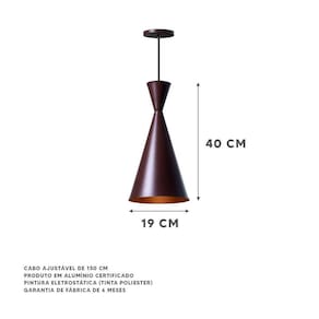 Kit 3 Lustre Pendente Canadá Marrom Com Cobre Mesa Jantar- dimensões: 40x19cm- canopla redonda de 11cm de diâmetro- produto feito em alumínio- 150cm de fio ajustável- pronto para instalação- utilize a lâmpada que desejar- soquete e-27- garantia de 6 meses contra defeitos de fabricação- lâmpadas não inclusas neste produto.