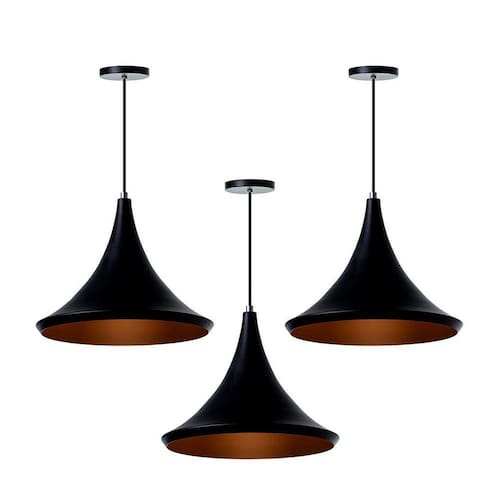 Kit 3 Lustre Pendente Chapéu Chinês 33Cm Preto Alumínio- dimensões: 25x33cm- canopla redonda de 11cm de diâmetro- produto feito em alumínio- 150cm de fio ajustável- pronto para instalação- utilize a lâmpada que desejar- soquete e-27- garantia de 6 meses contra defeitos de fabricação- lâmpadas não inclusas neste produto.