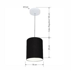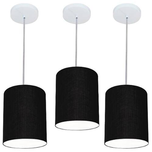 Kit/3 Lustre Pendente Cilíndrico Md-4012 Cúpula Tecido 18x25cm Preto