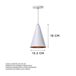 Kit 3 Lustre Pendente Cone P Branco Alumínio Decoração