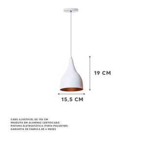 Kit 3 Lustre Pendente Gota Branco Alumínio Decorações - pendente modelo gota - dimensões: 19x15,5cm - canopla redonda de 11cm de diâmetro - produto feito em alumínio - 150cm de fio - pronto para instalação - utilize a lâmpada que desejar - soquete e-27 - garantia de 6 meses contra defeitos de fabricação