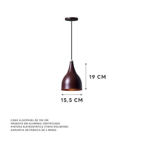 Características: - pendente modelo gota - dimensões: 19x15,5cm - canopla redonda de 11cm de diâmetro - produto feito em alumínio - 150cm de fio - pronto para instalação - utilize a lâmpada que desejar - soquete e-27 - garantia de 6 meses contra defeitos de fabricação - lâmpadas não inclusas neste produto.