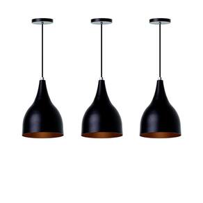 Kit 3 Lustre Pendente Gota Preto Alumínio Decorações- pendente modelo gota- dimensões: 19x15,5cm- canopla redonda de 11cm de diâmetro- produto feito em alumínio- 150cm de fio- pronto para instalação- utilize a lâmpada que desejar - soquete e-27- garantia de 6 meses contra defeitos de fabricação- lâmpadas não inclusas neste produto.