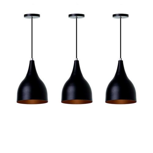 Kit 3 Lustre Pendente Gota Preto Alumínio Decorações - pendente modelo gota - dimensões: 19x15,5cm - canopla redonda de 11cm de diâmetro - produto feito em alumínio - 150cm de fio - pronto para instalação - utilize a lâmpada que desejar - soquete e-27 - garantia de 6 meses contra defeitos de fabricação - lâmpadas não inclusas neste produto.