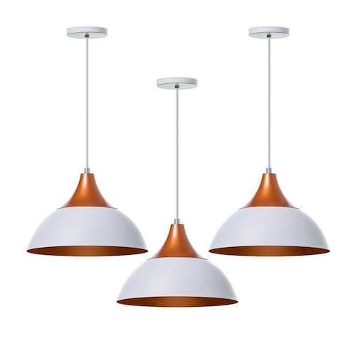 Kit 3 Lustre Pendente Panamá Branco Topo Cobre Alumínio