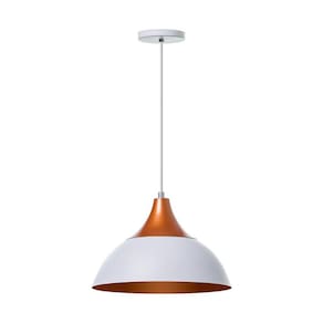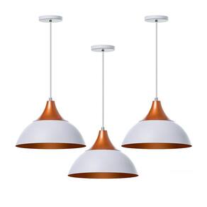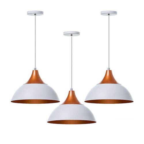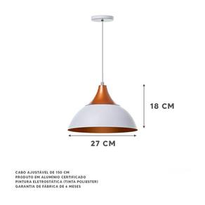 Kit 3 Lustre Pendente Panamá Branco Topo Cobre Alumínio- dimensões: 18x27cm- canopla redonda de 11cm de diâmetro- produto feito em alumínio- 150cm de fio ajustável- pronto para instalação- utilize a lâmpada que desejar - soquete e-27- garantia de 6 meses contra defeitos de fabricação- lâmpadas não inclusas neste produto.