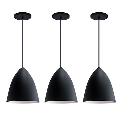 Kit 3 Lustre pendentes Vegas Preto com Branco R.R.J.V Anuncio referente a 3 unidades Lustre Pendente Modelo: Vegas Cor: Preto com Branco Medidas Aproximadas: Altura: 20 cm Diâmetro: 15 cm Canópla de teto: 12 cm Soquete e-27 plástico Material: alumínio Marca R.R.J.V Negócios O pendente acompanha 1 Um Metro de fio com altura ajustável. Marca: R.R.J.V. Negocios Ean: 7898970122210