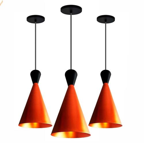 Kit 3 Lustres Pendentes Dixon New City Cobre Lustre Pendente Modelo: Dixon New City Cor: Cobre interno e externo copinho preto Medidas Aproximadas: Altura: 35 cm Diâmetro: 17 cm Canópla de teto: 12 cm Soquete e-27 plástico Material: alumínio O pendente acompanha 1 Um Metro de fio com altura ajustável. Anuncio Referente A 3 Pendentes Lâmpada não inclusa Marca: Não Informado