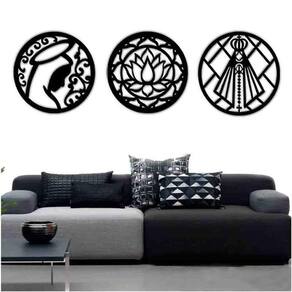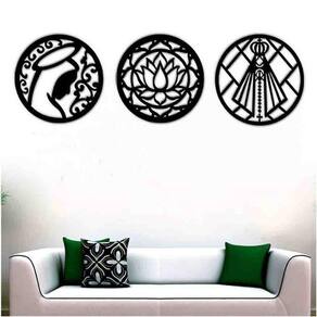 Tamanho total: 182cm comprimento x 60cm altura com espaçamento recomendado de 1 cm entre peças, Peças laterais: 60x60 cm | peça central: 60x60 cm Espaçamento entre as peças: 1 cm A instalação é bem simples, não será preciso fazer sujeira furando a parede pois utilizamos o método bem prático para instalar, contém fita dupla face 3m no verso do quadro.