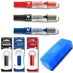 - 3 Marcadores de Quadro Branco Recarregável PILOT 3 Refil de Marcador de Quadro Branco PILOT 1 Apagador de Quadro Branco PILOT