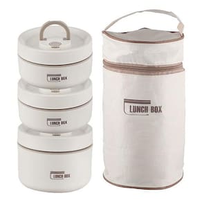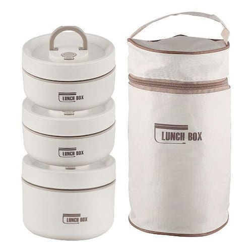 Kit 3 Marmita Térmica Redonda Viagem Bolsa Térmica Qualidade Cor: Bege Claro Marmita Térmica com Alça e Respiro -