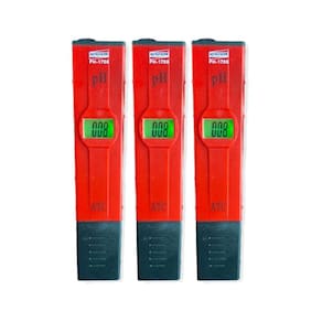 KIT 3 MEDIDOR DE PH MOD. PH-1700 / PHMETRO DIGITAL PORTÁTIL FAIXA DE 0,0 A 14,0PH DESCRIÇÃO: Medidor de pH digital portátil tipo caneta, com faixa de 0,0 a 14,0pH e resolução de 0,1. Com tampa de preservação do eletrodo, alimentação por bateria, leve e compacto acomodável ao bolso. DESTAQUES: Ponto de calibração de fácil acesso Acomodável ao bolso; Alimentação por baterias e com baixo consumo; Compensação automática de temperatura; Acompanha soluções solúveis. APLICAÇÕES: Amplamente utilizado para verificação rápida do pH de soluções na indústria química, alimentícia, fabricação de soluções diversas, piscicultura, carcinicultura, agricultura, etc. ESPECIFICAÇÕES TÉCNICAS: Display LCD de 3 dígitos Escala: 0,0 a 14,0pH Resolução: 0,1pH Precisão: ± 1pH Compensação de temperatura automática Sensor incorporado ao aparelho Ponto de calibração de fácil acesso Temperatura de Operação: 0 a 50ºC Alimentação: 3 baterias LR44 de 1,5V Peso: 75g Dimensões (LxAxP): 142 x 28,8 x 15 mm ACESSÓRIOS FORNECIDOS: 3 - Medidor de pH digital PH-1700 3 - Chave de Calibração 3 - Estojo 3 - Solução em pó (6,86pH e 4,01pH)