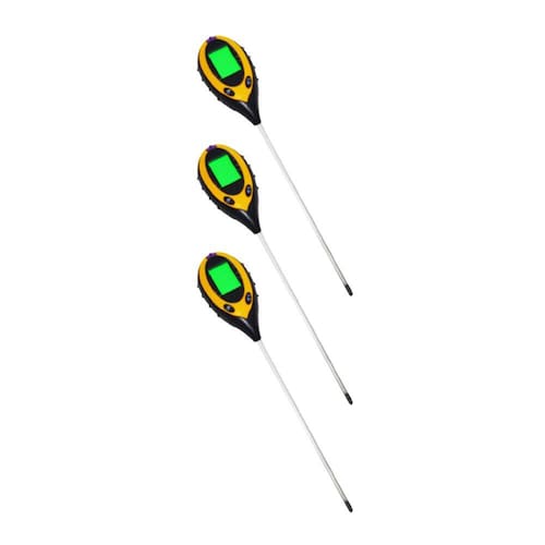 KIT 3 MEDIDOR DE PH DE SOLO MOD. PHD-3000 DIGITAL 4 EM 1, MEDIÇÃO DE PH, TEMPERATURA, UMIDADE E INTENSIDADE SOLAR COM HASTE DE 200MM DESCRIÇÃO: Instrumento para análise do solo 4 em 1, pH, umidade, temperatura e intensidade luminosa com haste de 200mm, Display LCD com luz de fundo, indicador de bateria fraca e desligamento automático DESTAQUES: LCD amplo de fácil visualização com luz de fundo, 9 níveis de análise de intensidade luminosa, 5 níveis de análise de umidade, chave seletora para as telas de medição, pH e Intensidade solar / Temperatura e Umidade. APLICAÇÕES: Medição e controle do solo em diversas grandezas para agricultura em geral, jardinagem, cultivo de flores e hortas. Controle de acidez e alcalinidade, umidade, temperatura e incidência solar no solo. ESPECIFICAÇÕES TÉCNICAS: Medição de pH, Umidade e Temperatura do solo e Intensidade luminosa Escalas de medição: Intensidade luminosa: Low-, Low, Low+, Nor-, Nor, Nor+, High-, High, High+ Umidade: Dry+, Dry, Nor, Wet, Wet+ pH: 3,5 ~ 9,0pH Precisão: ± 0.02 pH (2.0 - 12.0 pH) Temperatura: -9 ~ 50°C Desligamento automático após 5 min. Temperatura de Operação: 5 ~ 40°C Umidade de Operação: <85% UR Alimentação Bateria 9V Peso: 70,5g Dimensões(LxAxP): 122 x 63 x 36mm Ø5 x 200mm ACESSÓRIOS FORNECIDOS: 3 - Medidor Ph Mod. PHD-3000 3 - Bateria 9V Manual de instruções