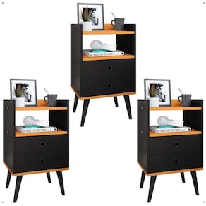 Kit 3 Mesas Cabeceira Dream Jogo Mesinha Decorativa Lateral Cama Decoração Quarto Casal Solteiro - Preto/Cinamomo - RPM Móveis - Preto