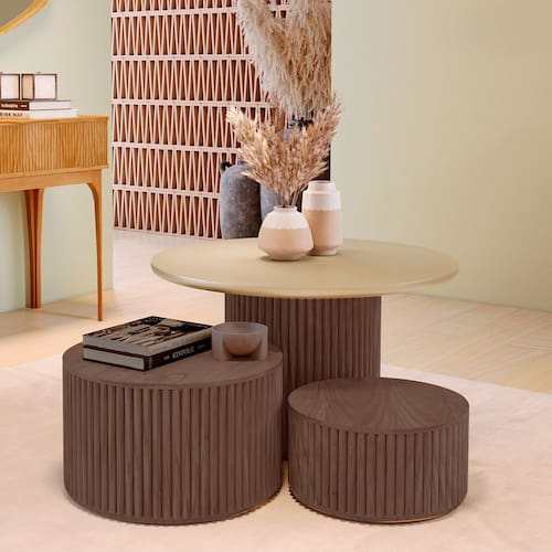 Kit 3 Mesas Decorativas Lua em Madeira Maciça - Castanho - Marrom