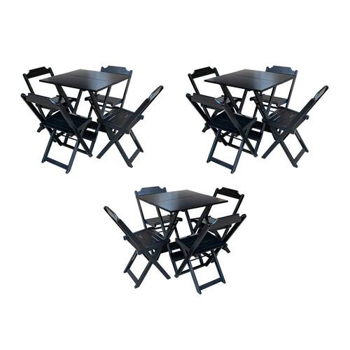 Kit 3 Mesas Quadradas Dobraveis 70x70 em Madeira Maciça com 4 Cadeiras - Preto - Preto