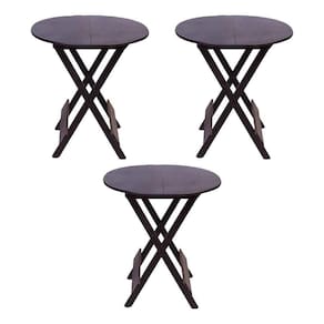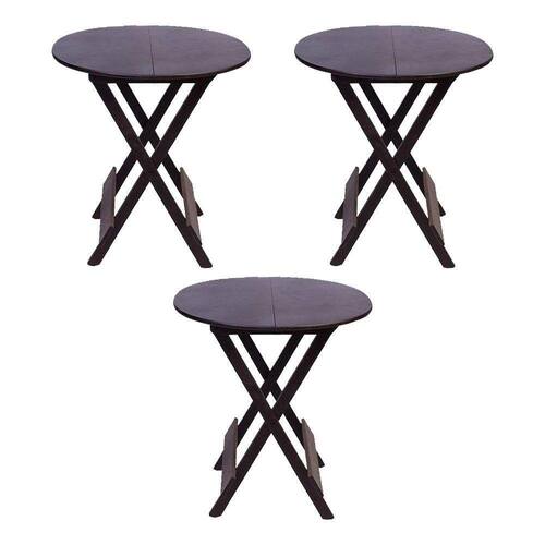 Kit 3 Mesas Redondas Dobráveis 70x70 Em Madeira Maciça - Preto - Cor: Preto