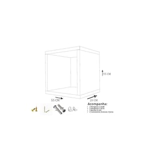 Material: confeccionado 100% em MDF de reflorestamento, com espessura de 15mm, e nas bordas frontais, são colocadas fitas de PVC que embelezam e aumentam a durabilidade, na linha de produtos naturais, aqueles que são vendidos para personalização ou utilização natural não acompanha tapa furos ou acabamento com PVC. Ainda conta com o acabamento feito à mão, para garantir a total qualidade do produto. Informações sobre as imagens do produto: - fazemos de tudo para apresentar imagens muito fiéis ao produto real. Porém, as cores do produto podem variar de acordo com o seu monitor, a iluminação do ambiente em que você está e até mesmo a sua percepção visual. - Além da cor pequenos detalhes e acabamentos podem não ficar evidentes na foto, por isso as imagens são meramente ilustrativas. - Os objetos decorativos que aparecem na foto não acompanham o produto. As medidas dos produtos estão nas fotos publicadas Os produtos que precisam de kit para instalação, ao exemplo de prateleiras, painéis, nichos e suportes acompanham o kit de instalação. Produtos enviados montados apenas requer instalação no local.