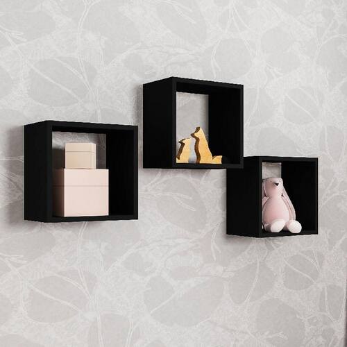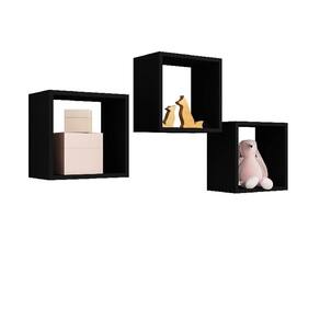Kit 3 Nichos de Parede Quadrado AJL Móveis Cor Preto