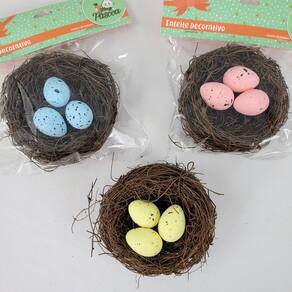 Kit 3 Ninho Decorativo Com 3 Ovos De Páscoa Enfeite Páscoa kit com 3 Ninhos de Cipó com Ovos Decorativos - Elegância e Sofisticação para Sua Decoração