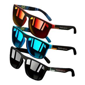 Kit 3 óculos De Sol Masculino Polarizado Square - Azul + Vermelho + Preto