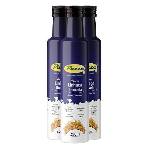 Kit 3 Óleo de Linhaça Dourada Extra Virgem Pazze 250ml Sobre o produto A linhaça é conhecida por ser uma semente muito nutritiva e há algum tempo já faz parte da rotina de quem coloca a saúde em primeiro lugar. O óleo de linhaça dourada é fácil de ser incorporado à alimentação diária e é ainda mais rico em alguns nutrientes do que a semente de linhaça, como é o caso dos ácidos graxos ômega 3. Rico em ácido alfa linolênico, um dos ácidos graxos do ômega 3, o óleo de linhaça dourada é capaz de produzir os outros dois ácidos graxos do ômega 3, o DHA e o EPA. Isso quer dizer que este alimento vai proporcionar grandes doses destas três gorduras essenciais à nossa saúde. Sem dúvidas, o maior dos benefícios do óleo de linhaça dourada é a impressionante quantidade de ômega 3, que vai ajudar a diminuir inflamações, melhorar o humor, a pele, os cabelos e dar mais saúde ao cérebro e ao coração. Modo de usar Sabor levemente amargo, acrescente como tempero de saladas e na preparação de pratos especiais, ou conforme orientação . Ingredientes Óleo de Linhaça Dourada Bruto. Marca: Não Informado