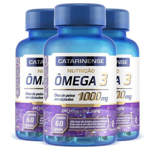 Kit 3 ômega 3 epa 540mg dha 360mg catarinense 60 cápsulas O consumo de ácidos graxos ômega 3 auxilia na manutenção de níveis saudáveis de triglicerídeos, desde que associado a uma alimentação equilibrada e hábitos de vida saudáveis. 3 cápsulas ao dia Não contém glúten Ingredientes: óleo de peixe. Gelificante: gelatina ins 428 . Umectante: glicerina ins 422 . Veículo: água. Alérgicos: contém derivados de peixe. Pode conter derivados de amendoim e soja Marca: Não Informado