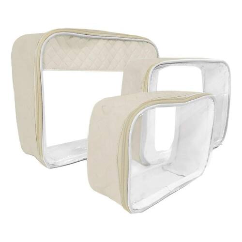 Kit Organizador Para Malas De Bebe - 3 Peças - Bege Neutro Feito para organizar a mala maternidade, malas para passeios e viagens do bebê da melhor forma possível, os tamanhos são essenciais para organização, a transparência do plástico deixa organizado para as trocas de roupas do seu pequeno a . Tamanho perfeito, ótima costura, não solta tinta, plástico super reforçado. Resistente, durável e impermeável, amplo espaço para melhor armazenamento, prático e higiênico de todos os itens do bebê, fechamento em zíper. Acabamento premium Matelassê Medidas dos Organizadores: Pequena: 26 cm X 16 cm X 8 cm Média: 30 cm X 26 cm X 9 cm Grande: 34 cm X 30 cm X 11 cm Composição do Produto: 80% PVC - 20% Poliéster Exclusivo Marca Best Sling do vendedor: 1 meses Marca: Não Informado