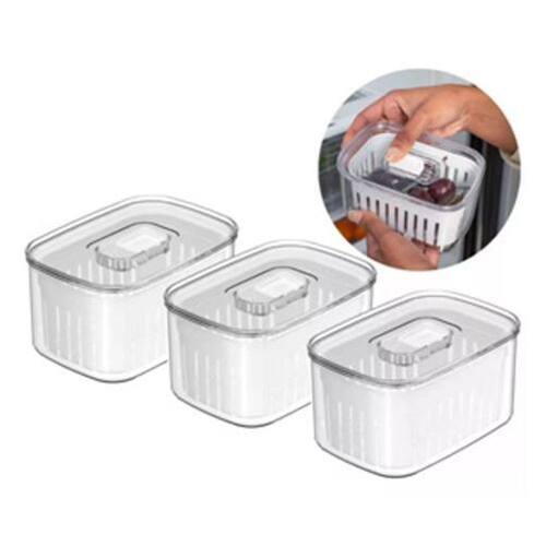 Aspen Decor F6274 Kit com 3 Organizador para Geladeira Clear Fresh com Cesto Legumes Frutas e Verduras Com o organizador de geladeira Clear Fresh com Cesto , você terá organização e irá conservar e manter o frescor de seus alimentos por mais tempo, a tampa com ventilação ajustável mantém o nível de umidade ideal para cada tipo de alimento, mantendo-os frescos por mais tempo. Possui um cesto de drenagem que impede que a umidade acumulada se mantenha no alimento, evitando o murchamento e deterioração precoce. Caracteristicas: - Material Bandeja - POLIPROPILENO; - Material Organizador - POLIENTIRENO; - Cor: Transparente; - Cesto para drenar agua dos alimentos; - Medidas 10 x 14,5 x 7,5cm Vantagens: - Ventilação e Humidade controlada; - Organização e otimização de espaço; - Com Cesto de Drenagem Removível; - Capacidade 0,65L. Acompanha: 03 Organizador Clear Fresh com Cesto 0,65L organizadores De Geladeira De Drenagem Com Respiradouro caixa de Armazenamento de Frutas Legumes E Vegetais conjunto Linha Clear Fresh OU Garantia do vendedor: 90 dias