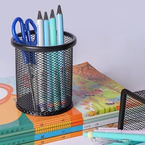 O conjunto de 3 organizadores para escritório de metal tipo copo para lápis é uma solução prática e funcional para manter sua área de trabalho organizada. Cada organizador é feito de metal resistente e durável, garantindo sua longevidade e capacidade de suportar itens de papelaria. Cada organizador tem o formato de um copo cilíndrico e possui uma altura adequada para acomodar lápis, canetas, marcadores, tesouras e outros utensílios de escrita. Com diferentes tamanhos, você pode escolher entre um conjunto que inclui três organizadores de altura igual ou três organizadores com alturas variadas para atender às suas necessidades específicas de organização.