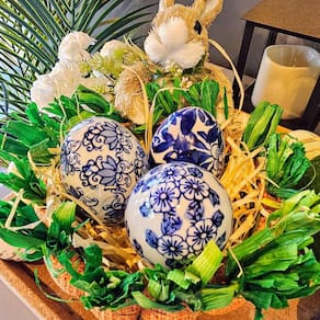 Por que escolher o Kit com 3 Ovos Decorativos de Porcelana Azul e Branco Floral da Inigual Decor