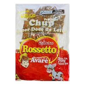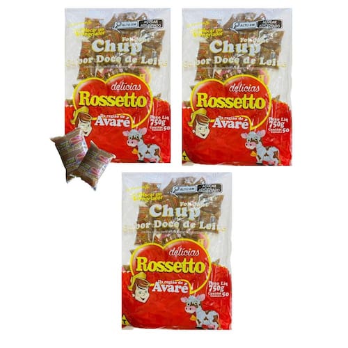 Contém: 3 pacotes chup doce de leite rosseto 1,5kg com 50 un