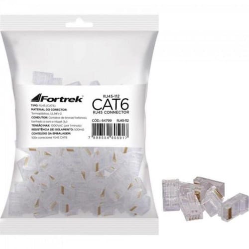 Kit 3 Pacotes Conector RJ45 Cat6 Fortrek com 300 Peças