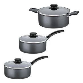 Kit Com 3 Panelas Antiaderente Tampa de Vidro 16 Cm, 18 Cm e 20 Cm Tramontina Turim Grafite