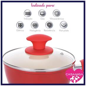 Item antiaderênte indicado para fogões de Indução, Gás, Vitrocerâmico, Elétrico, Halogênio, Resistência e Hot-plate.