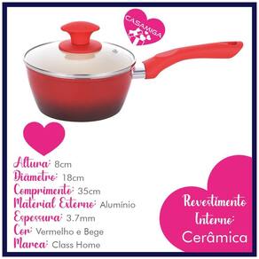 Para compor seus artigos de cozinha e deixar seu momento ainda mais prazeroso, a panela Ceramic Class é perfeita. Design moderno, tampas de vidro temperado com saída de vapor e alças em baquelite com revestimento Soft-Touch que garantem conforto e maior segurança. Trata-se de um item de 3,7 mm, sendo sua qualidade uma das melhores do mercado;