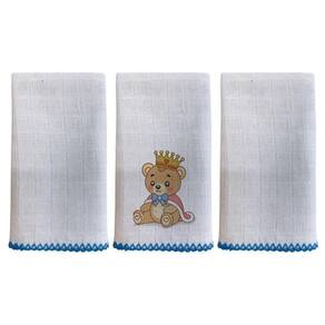 Kit com 3 unidades, sendo 2 Lisos Branco e 1 Bordado Bainha em crochê feito a maquina não desfia Composição: 100% algodão, tecido fralda Tecido quadriculado Tamanho: 33cm x 33cm Fabricação própria