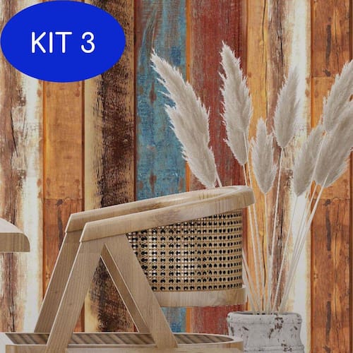 Kit 3 Papel Parede Adesivo Ripa Madeira Demolição Sala