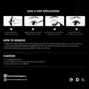 Fácil de usar, a pintura dos olhos pode grudar nos cílios postiços.
