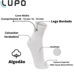 Kit 3 Pares Meias Lupo Cano Médio Unissex 03148 Nome: Branca M Kit 3 Pares Meias Lupo Cano Médio Unissex, confeccionado em algodão super macio, respirável e confortável. Indicado para o uso casual e também para atividades esportivas, garantem maior conforto e ajuste perfeito no pé, proporcionando uma sensação leve e suave. Alta tecnologia e calcanhar verdadeiro. - Marca: Lupo - Modelo: Meia Cano Médio - Referência: 01348 - Contém 03 pares - Cores - Unissex - Tecido com ventilação - Composição: Algodão 79%, poliamida 18% e Elastano 3%.