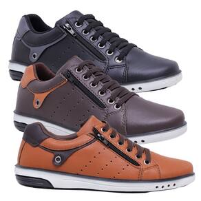 Kit 3 Pares Sapatênis Masculino Fechamento Elastico e Ziper - 43 - Preto