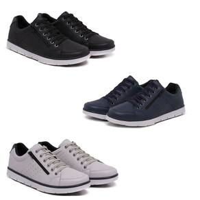 Kit 3 Pares Sapatenis Masculino Ziper Cadarço Confortável - 42 - Preto