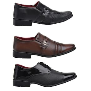 O kit de sapatos sociais da Torrenezzi é composto por 3 pares de calçados, sendo 2 pares na cor preta, 1 par na cor marrom. Confeccionados em material sintético de alta qualidade, proporcionam comodidade e estilo. Contém fechamento em elástico que combinado com solado em borracha antiderrapante, garantem segurança e estabilidade ao caminhar. Versátil, a peça inspira elegância e é uma ótima escolha para você que deseja conforto e praticidade.